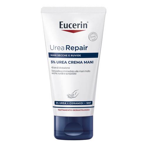 Eucerin UreaRepair Crema Mani Rigenerante 5% Urea contiene Urea, Ceramide ed altri Fattori di Idratazione Naturale (NMF). È stato clinicamente comprovato che questi ingredienti donano sollievo immediato ed un'idratazione intensa alle mani molto secche, ruvide e tese, anche dopo ripetuti lavaggi. Questa crema rafforza la naturale barriera della pelle, rendendola resistente alla secchezza fino a 48 ore.