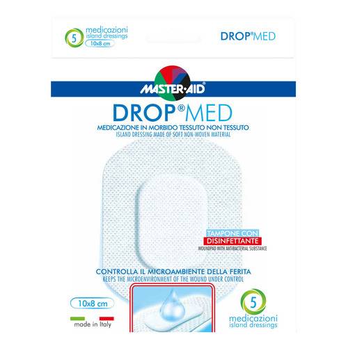Medicazione traspirante in tessuto non tessuto, dotata di un tampone assorbente con sostanza disinfettante (clorexidina digluconato 0,5%).